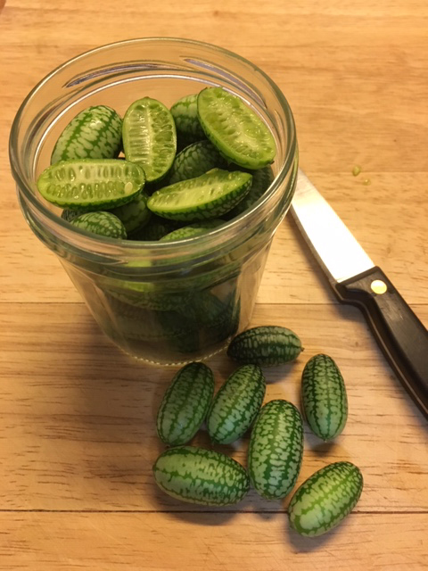 I planted these cucamelons or Mexican mini melons as an experiment and they have been a surprise package.