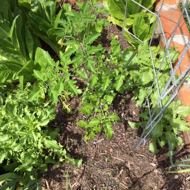 Cleaned up the bolting lettuce and decided to add a tomato kit frame rather than the small stakes I started with.