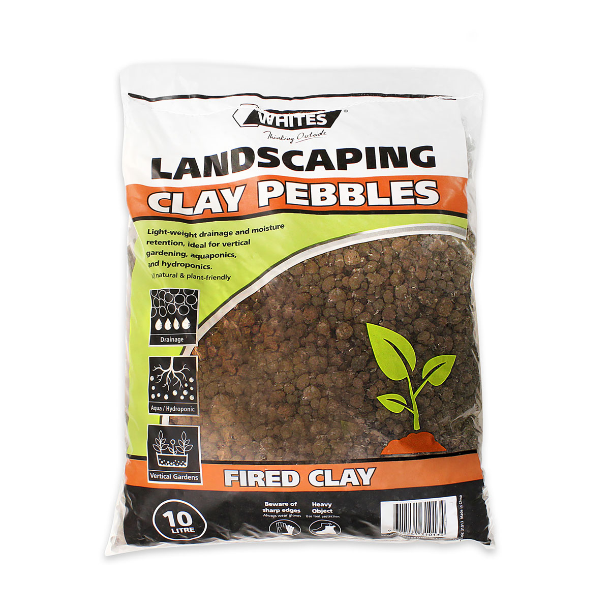 Whites Fired-Clay Pebbles are a lightweight, easy-to-use growing medium with excellent drainage and moisture retention.The ball-shape provides good amounts of oxygen for root growth, and each pebble features micro-pores to retain water.